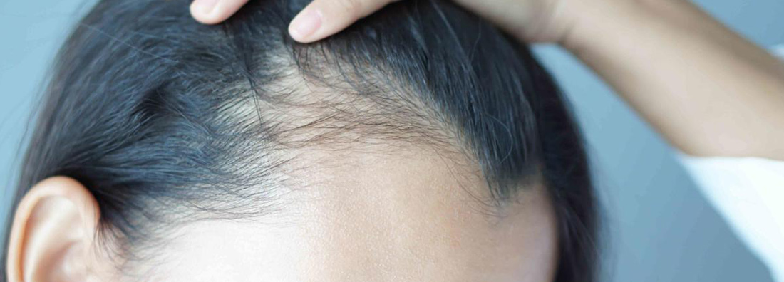 Women often notice thinning hair when they part their hair in the middle, which makes the parting area more visible and the scalp more evident.